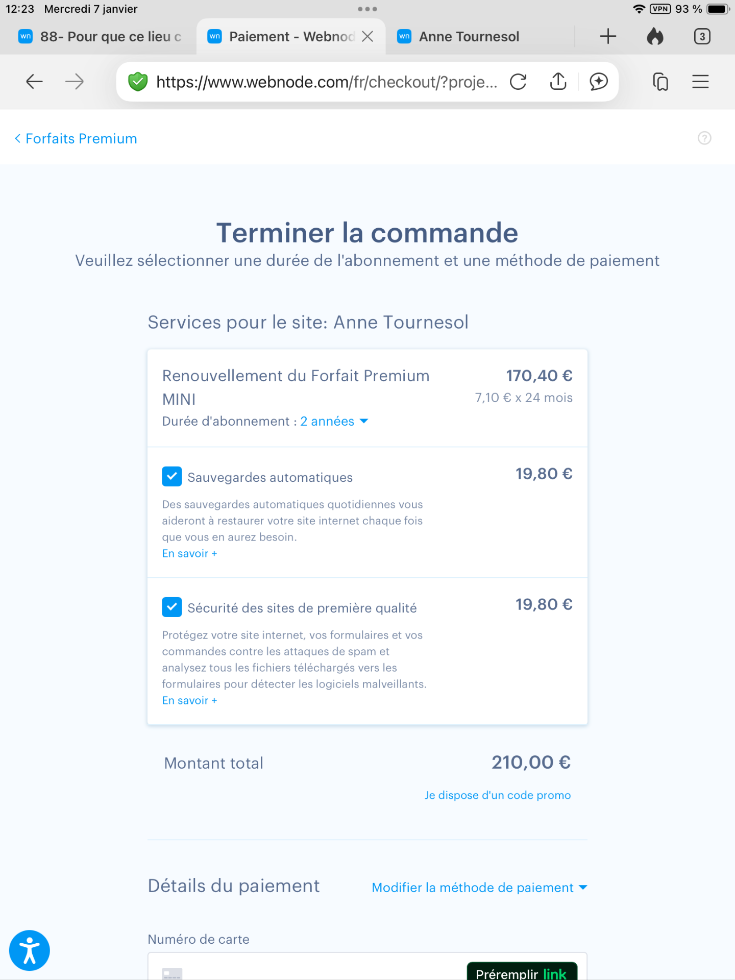 Prendre un forfait sur deux ans permet une réduction du prix de base. Les prix que vous voyez sont sans les taxes et avec sauvegarde et sécurité (que je n’ai pas actuellement).