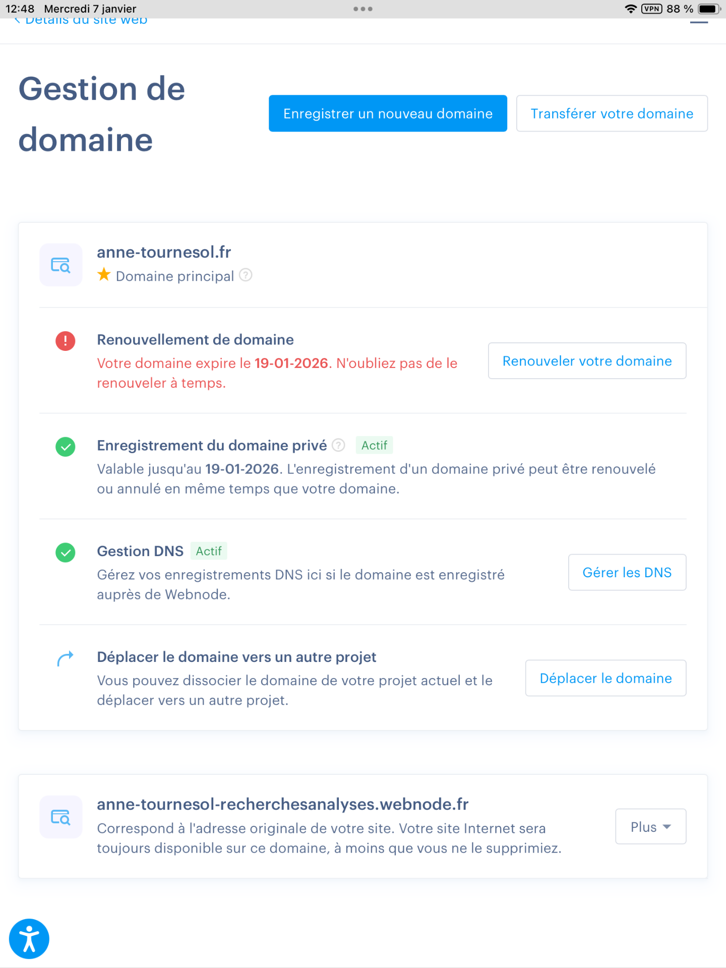 Sans cela, le site resterait accessible sous une forme plus réduite. Cela implique un retour à la formule gratuite, ce qui est déjà bien, mais avec une limite de données réduite et une adresse personnalisée du domaine qui en revenant à la version gratuite serait longue, mais aussi plus difficile à trouver sur le web.